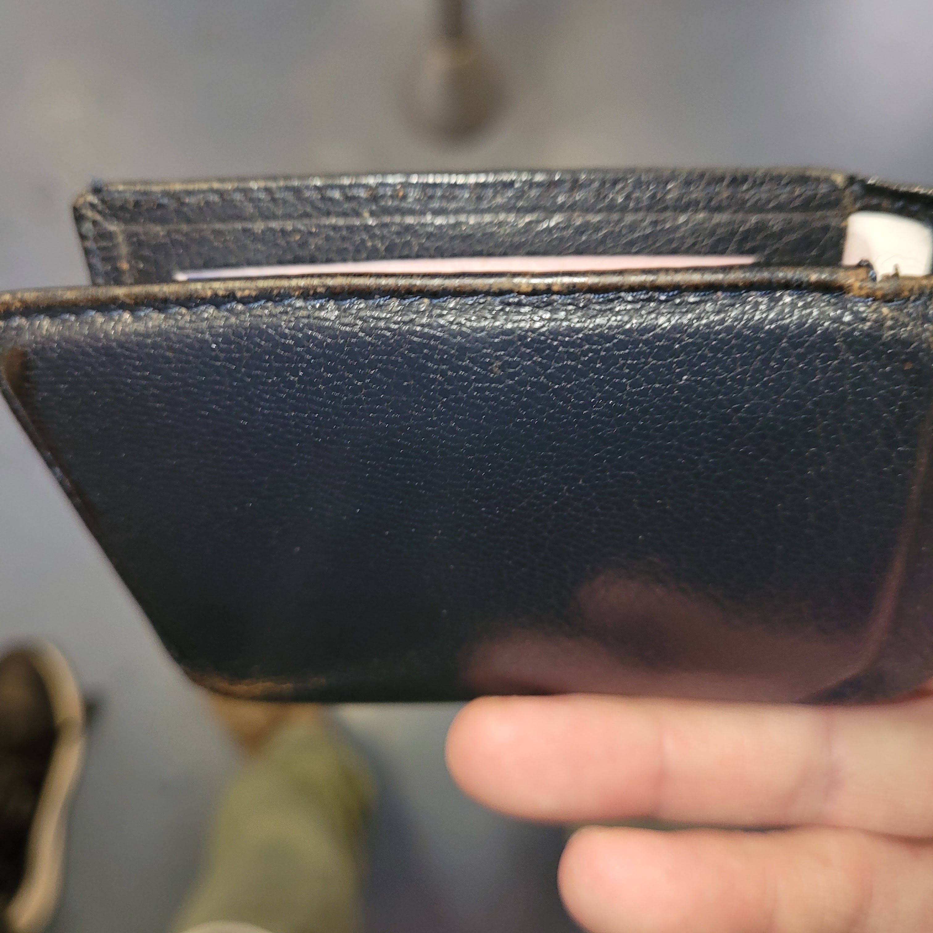 Fabriqué par Natacha il y a 30 ans. Usage quotidien de ce mini portefeuille qui vieillit avec moi.